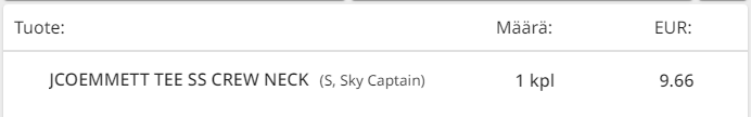 Kun vaihtoehdot on valittu, paina Hyväksy. Tällöin tuote siirtyy muiden tuotteiden tavoin ostoskoriin.