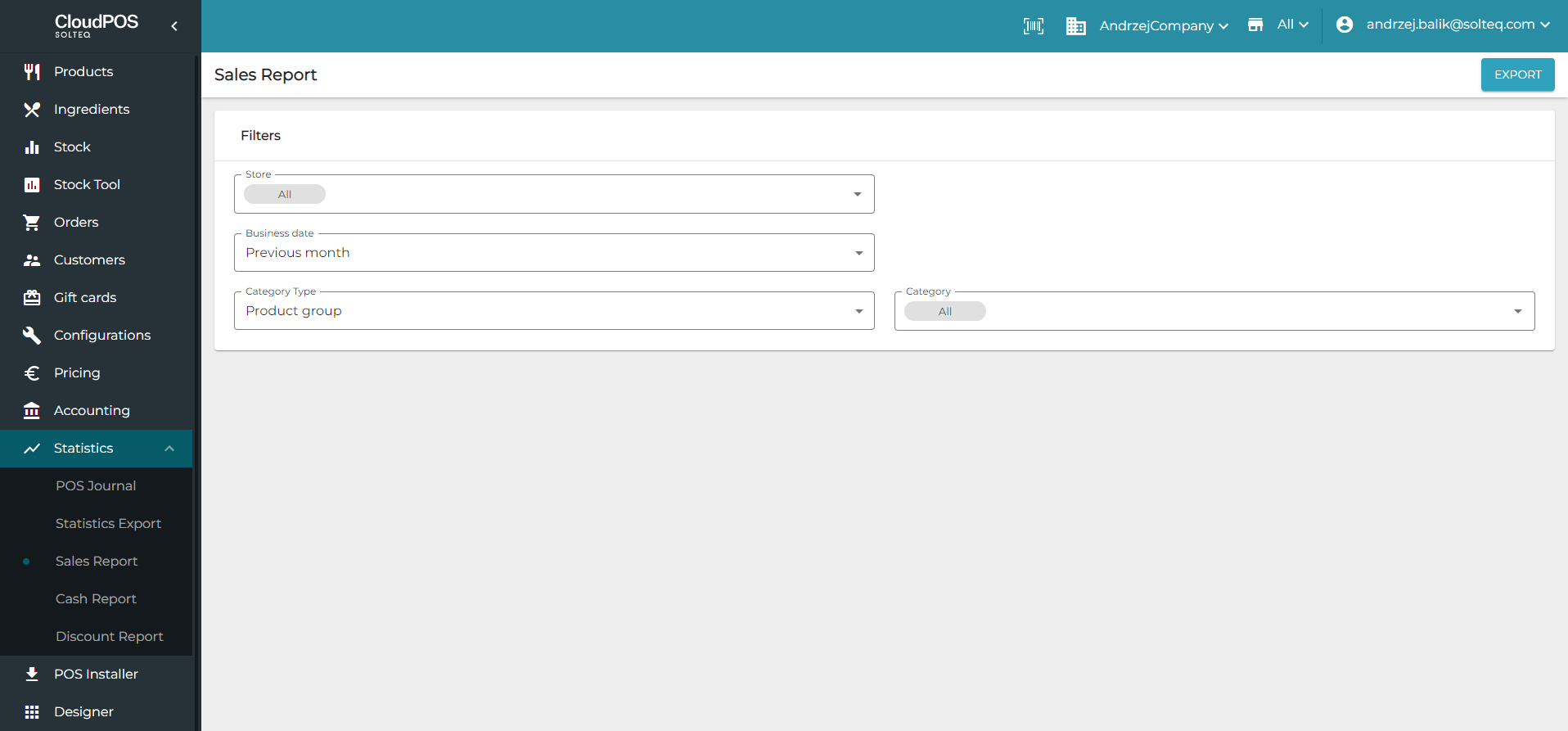 Klikkaa Tilastot ja valitse Myyntiraportti taustapalvelun valikosta.