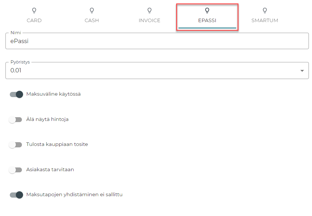 Valitse maksutapa, jota haluat muokata klikkaamalla sitä.