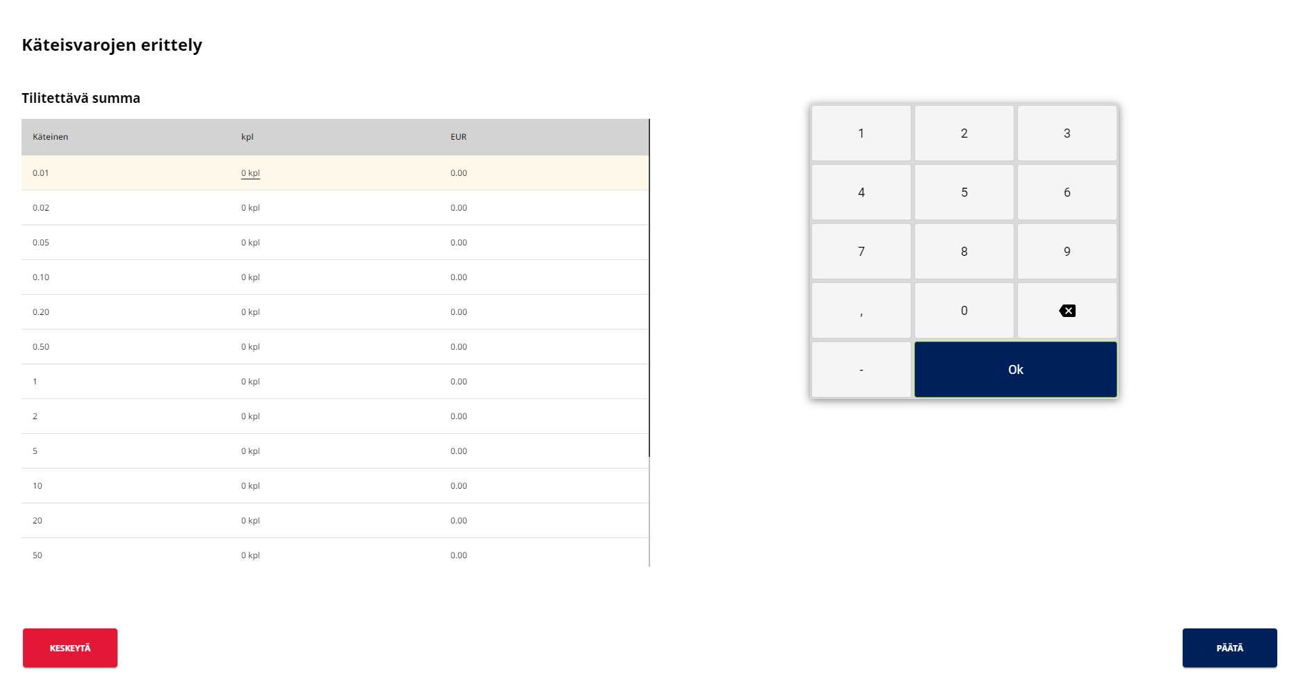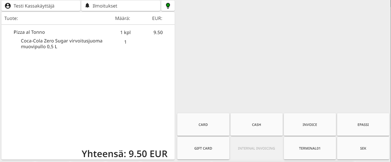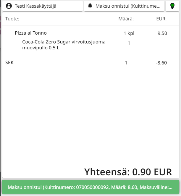 1. MIkäli asiakas maksaa arvoltaan suuremmalla rahasummalla kuin ostoskorin loppusumma, Käteistä takaisin -luku näytetään päävaluuttana.