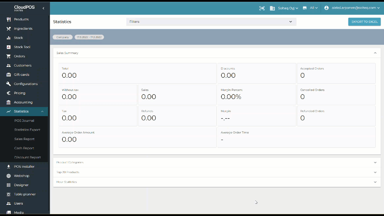 Voit luoda taustapalvelussa kuukausittaisen raportin, ja ladata sen sitten itsellesi Excel-muotoisena. Alla olevassa kuvassa on esimerkki kyseisestä raportista.