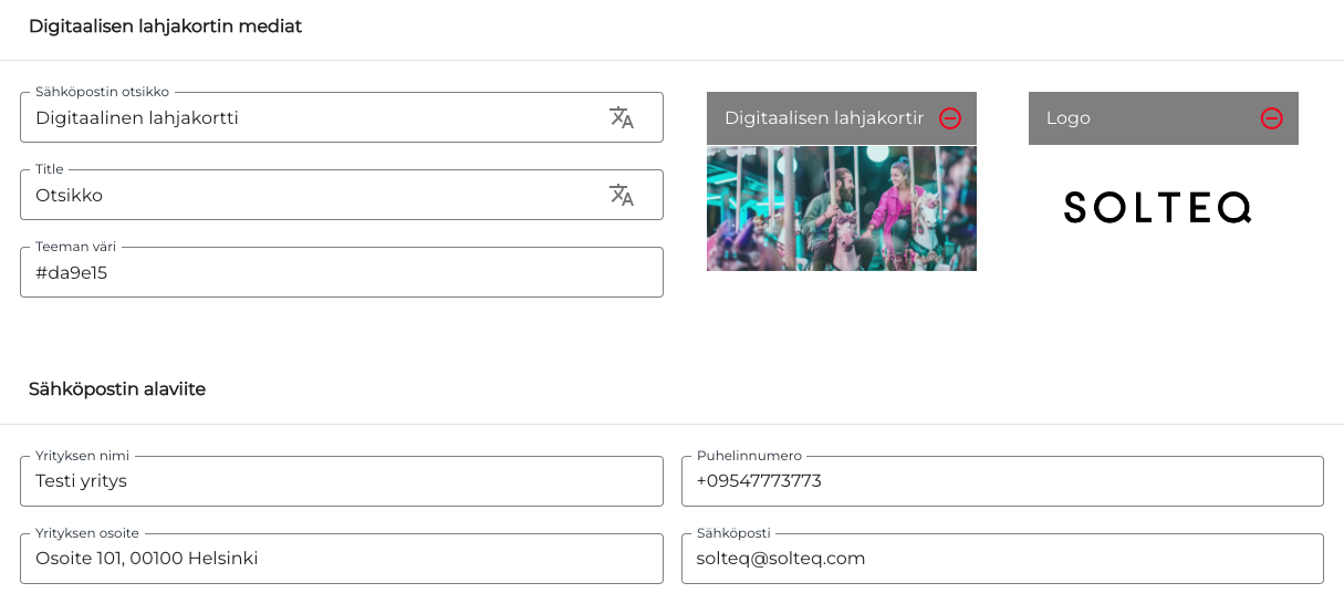 Konfiguroi digitaalinen lahjakortti