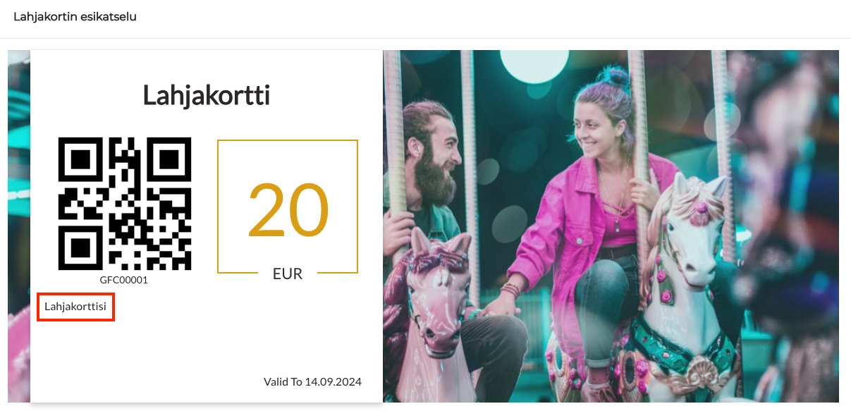 Lahjakortin esikatselu