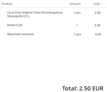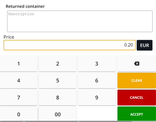 2. Syötä hinta (=palautettava pantti) avoimelle tuotteelle, ja paina Hyväksy.