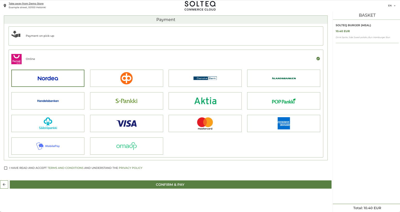 Solteq Commerce Cloud tukee Paytrail v3:a. Katso lisätietoja sivulta Maksuvälineet.