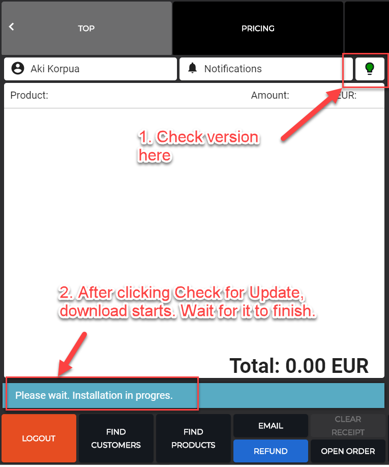 Kassan käyttölittymän päivitysongelmat voidaan nyt sivuuttaa manuaalisesti.