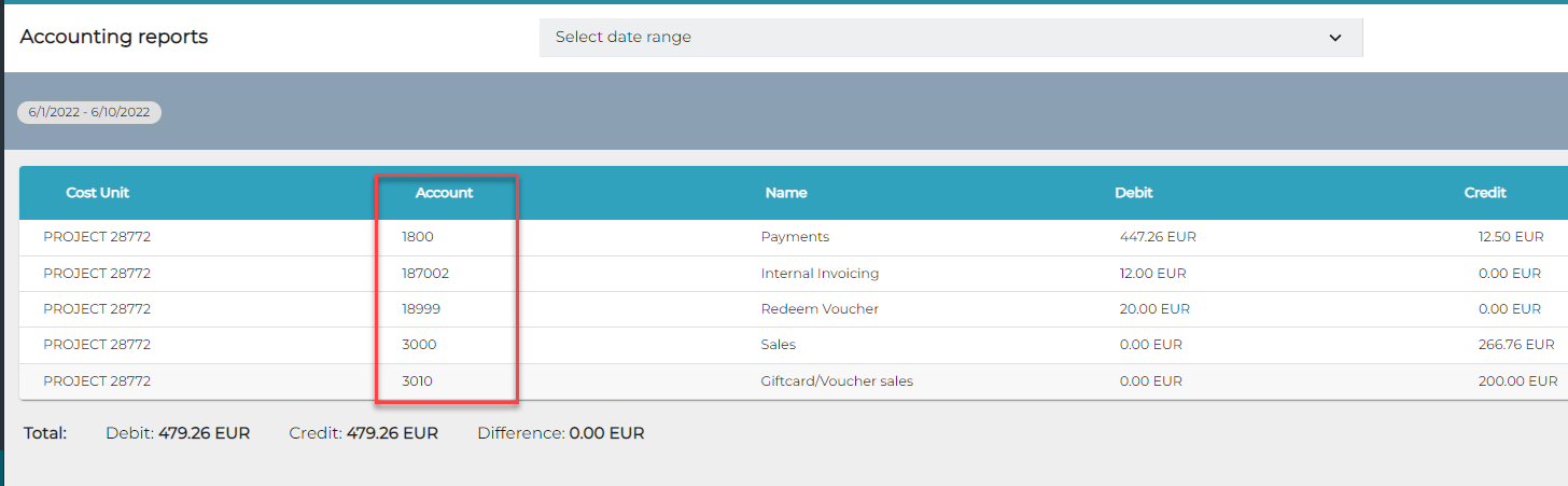 Tiliraportin tiedot (myös Excel-tiedostossa) ryhmitellään kustannuspaikan ja tilin mukaan. Ryhmittely tehdään aakkosjärjestyksessä, koska molempiin kenttiin on mahdollista lisätä kirjaimia.