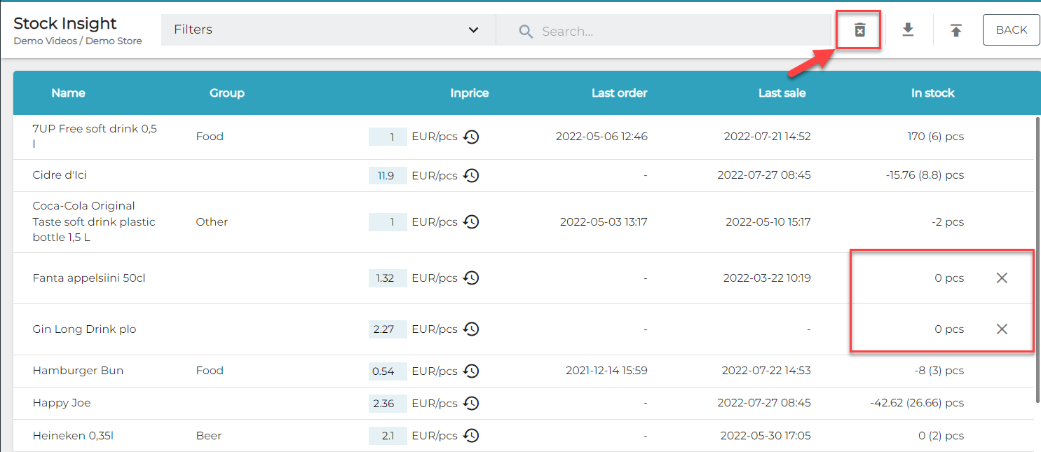 Uusi Kaikkien tyhjien varastotuotteiden poistaminen varastosta -toiminto on lisätty Varaston yleisnäkymään; toiminnon avulla voit poistaa kerralla varastosta kaikki varastotuotteet, joiden saldo on 0.