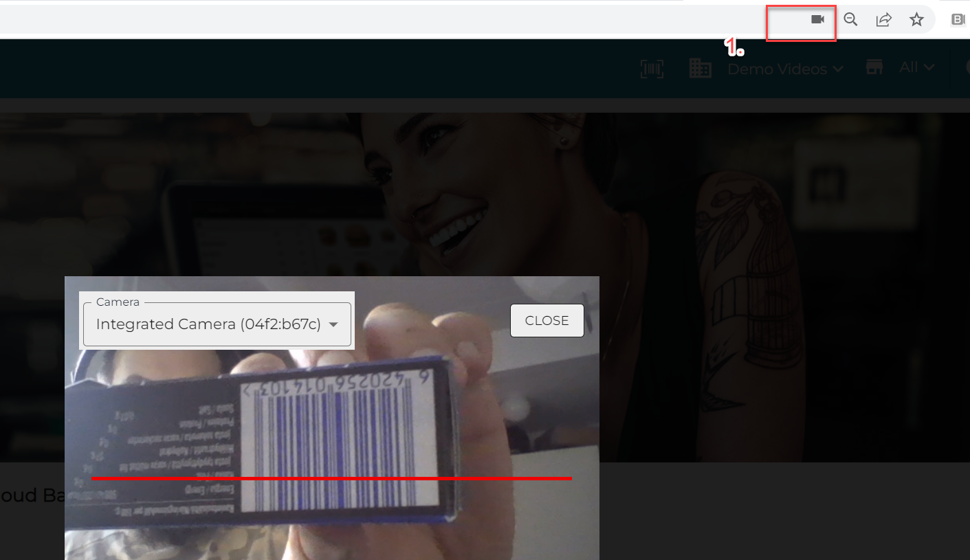 Taustapalvelun skannaustoimintoa on parannettu uuden kirjaston muodossa; varmista että selaimesi webcam-toiminnallisuus on päällä (katso kuva alla).