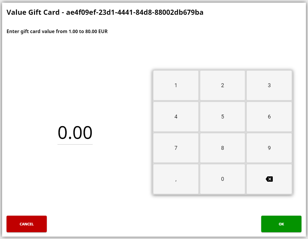 Mikäli lahjakorttipohjan asetuksissa on Salli uudelleenlataus -asetus päällä, kyseisellä pohjalla tehdyt lahjakortit voidaan uudelleenladata kassalla.