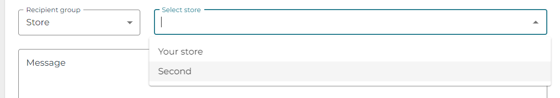 Myymälä: Jos valitset tämän vaihtoehdon, tulee näkyviin toinen pudotusvalikko josta sinun tulee valita myymälä(t) joihin viesti lähetetään.