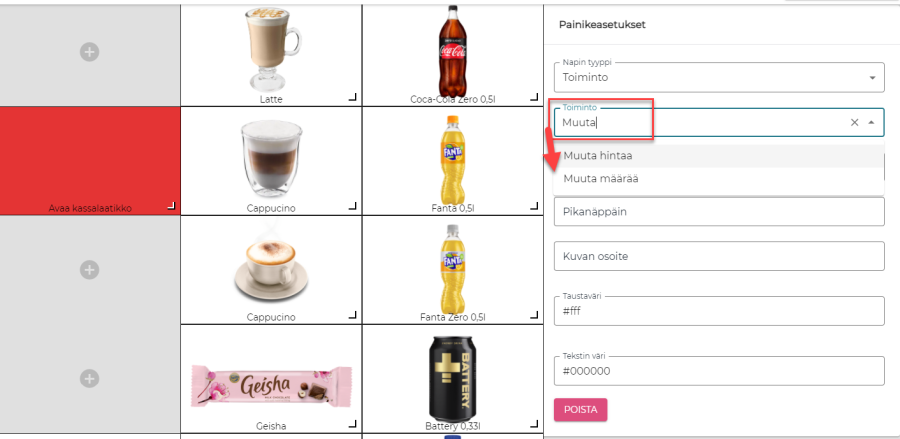 Kassan käyttöliittymän suunnittelussa toimintojen haku onnistuu kirjoittamalla toiminnon nimen.