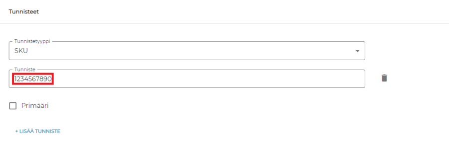 Mikäli syötetään viivakoodi, josta generoitaisiin jo käytössä oleva SKU, ohjelma antaa virheilmoituksen. Lisäksi on mahdollisuus siirtyä muokkaamaan tuotetta, jolla kyseinen SKU on jo käytössä.