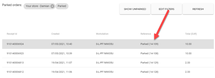 Kun tilaus viedään kuittiparkkiin ilman pöytäkarttaa, sille lisätään automaattisesti viitteeksi keittiön tilausnumero.