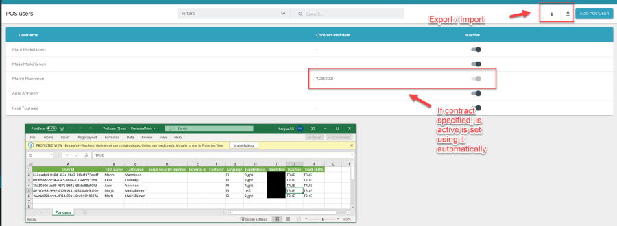 Kassakäyttäjien massaa voidaan paremmin hallita Excel-vienneillä ja -tuonneilla: