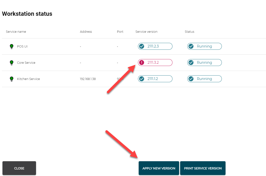 Olemme yksinkertaistaneet näkymää, mistä voi tarkistaa eri kassan komponenttien statuksen. Käytännössä ruudulla voit jatkossa vain "asentaa uudet versio" jos ne ovat saatavilla tai tulostaa kuittikirjoittimelle nyt käytössä olevat versiot.